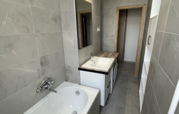 A tágas loggia tovább növeli a komfortérzetet, a folyosón található beépített szekrény pedig praktikus tárolási lehetőséget biztosít. Az ízlésesen kialakított fürdőszoba mosógéppel felszerelt.