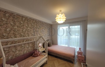 A lakáshoz 2 autó számára kényelmes, fedett parkoló és egy tároló is tartozik, amelyek az árban benne vannak. A vételár a gyerekszobában lévő bútorokon kívül tartalmazza a teljes berendezést, beleértve az igényes, minőségi konyhabútort, a beépített sütőt, főzőlapot, mosogatógépet és az előszobabútort.
