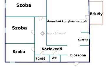 Elrendezés:- amerikai konyhás nappali,- 3 külön nyíló szoba,- erkély,- külön fürdőszoba és WC.