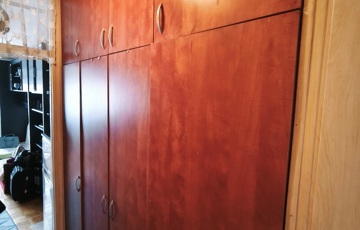 A térkihasználás kiváló: a folyosón beépített szekrény, a konyhában beépített konyhabútor segíti a rendszerezett mindennapokat. A francia kilépő pedig világosabbá, barátságosabbá teszi a lakóteret.