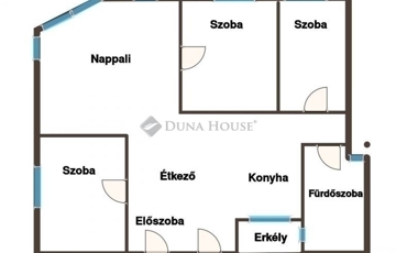 Hatalmas konyha-étkező, világos nappali, három hálószoba, fürdőszoba WC-vel, külön WC kézmosóval, két erkély.