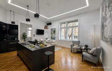 Tágas, polgári lakás a Lövőház utca sétáló részénA Lövőház utca sétáló része Buda egyik legismertebb és legkedveltebb városi környezete. Éttermek, kávézók, üzletek, a Mammut bevásárlóközpont és a Millenáris park néhány perc sétára találhatók mégis megmarad az utca sajátos, nyugodt hangulata.Ebben a környezetben kínálunk megvételre egy 100 m²-es, igényesen felújított lakást, amely egy liftes, téglaépítésű társasház félemeletén található. A 3 métert meghaladó belmagasság és a jól átgondolt térszervezés kellemes, tágas térérzetet ad az ingatlannak.A lakás elosztása praktikus és jól használható:32 m²-es amerikai konyhás nappali, prémium beépített gépekkelkét tágas hálószobaegy félszobadupla komfortos kialakításA műszaki tartalom és a felszereltség is igényes:légkondicionálásgázkazános fűtéstávirányítású alumínium redőnyökbiztonsági bejárati ajtófaliszéftávolról vezérelhető riasztó- és kamerarendszerigényes belsőépítészeti megoldásokParkolási lehetőség a közelben biztosított: a Millenáris Avantgarde Irodaházban őrzött teremgarázs hely bérelhető, 024 órás portaszolgálattal.Ha Buda egyik legjobb utcájában keres elegáns városi otthont, akkor ez a lakás egy olyan lehetőség, amit érdemes személyesen is megnézni.