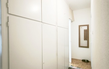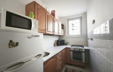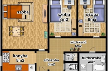 A rendezett, tiszta liftes lépcsőházból a több ponton záródó, biztonsági bejárati ajtón keresztül lehet bejutni. Belépve a lakásba az előtérből balra nyílik a gépesített, bútorozott ablakos tágas konyha ahova akár étkező asztalka is elfér, igény szerint. Jobbra nyílik a toalett, mellette egy polcokkal ellátott tároló ahol el tudjuk helyezni a nem minden nap használatos dolgokat. Szemben a tágas nappali szoba, keleti fekvésének köszönhetően napfényes, kellemes, komfortos érzetet nyújt. Innen jobbra a közlekedő egyik oldala beépített gardrób szekrénnyel van ellátva tovább növelve a tárolási felületeket. A közlekedőből nyílik a két fél szoba és szemben a kádas fürdőszoba, ahol a mosógép is helyet kapott.