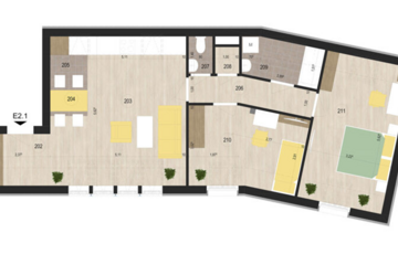 Alapterület: 57,24 m² nettó terület, tágas és világos terekkel.