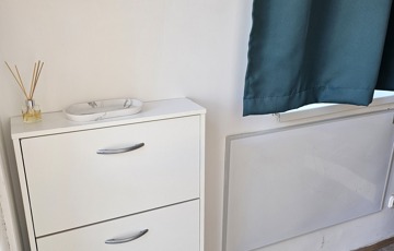 * Modern belső: Okos tárolási megoldások (tükrös gardrób, cipősszekrény) és hangulatos egyedi dekoráció.
