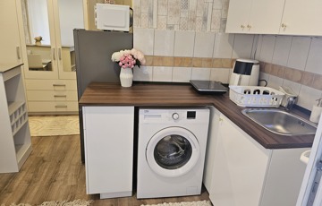 * Teljes felszereltség: Nemcsak bútorozott, hanem gépesített (mosógép, mikro, air fryer, indukciós főzőlap) és teljesen felszerelt (étkészlet, poharak, tiszta ágynemű és törölközők is rendelkezésre állnak).