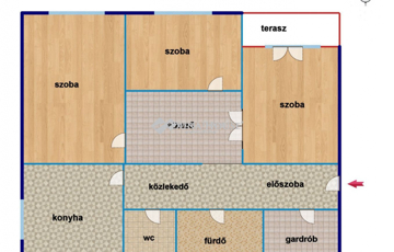 Helyiségei: tágas nappali erkéllyel, két különálló szoba, étkező, ablakos konyha, fürdőszoba, külön WC, gardrób és közlekedő.