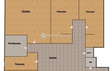 Az ingatlan jelenleg kiváló elrendezésű: 3 szoba + 2 félszoba, tágas étkezős konyha, kamra és egy kényelmes, sarokkádas fürdőszoba alkotja.