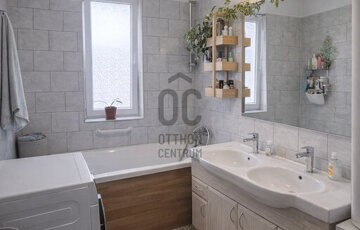 A praktikus elrendezés (nappali + 2 hálószoba, külön WC, tágas fürdő dupla mosdóval) kényelmes, jól élhető otthont biztosít.