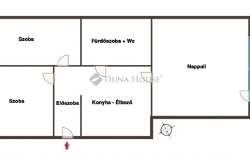 Az ingatlanban 3 különnyíló szoba, egy étkezős konyha, egy fürdőszoba+wc, és egy előszoba helyiségek találhatóak. Elrendezése kitűnő, a szobák mind külön bejáratúak, a tágas, 6m2-es erkély a legnagyobb szobából nyílik, utcai nézetű. A lakás méretéhez képest kifejezetten tágas fürdőszobával rendelkezik, melynek köszönhetően nagy méretű sarokkád is beszerelésre került.