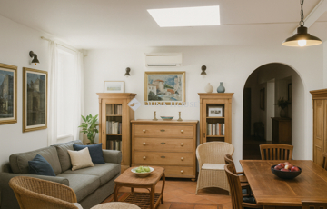 A lakás 2017-ben épült ráépítésként, egy 1900-as évek elején épült, patinás ház tetején, így a régi polgári környezet és a modern kialakítás előnyeit ötvözi.