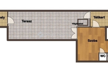Az ingatlan alapterülete 3 hálószobát, tágas nappalit konyhával, fürdőszobát, összesen 3 WC-t, praktikus tárolót, valamint egyedülálló, 60 m²-es teraszt foglal magában.