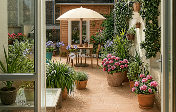 A teraszról páratlan panoráma nyílik a budai hegyekre és a város látképére tökéletes helyszín baráti összejövetelekhez vagy nyugodt pihenéshez.