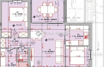 -tágas nappali plusz két hálószobás,