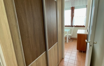 Kiemelendő az esztétikusan kialakított előszoba, ahol egy praktikus, beépített gardróbszekrény segíti a tárolást. A konyha mellett további beépített szekrény kapott helyet, amely akár kamraként is használható.