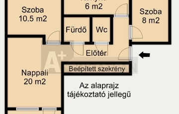 - 60 m2: Elosztását tekintve nappali plusz két fél szoba.
