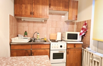 A környék infrastruktúrája kiváló: boltok, iskola, óvoda, tömegközlekedés rövid sétával elérhetőek, miközben a lakás csendes környezetben található.