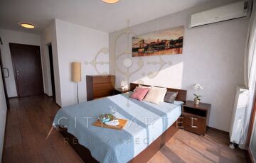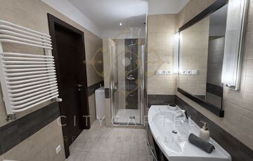 A lakás központja a hatalmas üvegfelületekkel rendelkező, panorámás, amerikai konyhás nappali, amelyet elegáns tolóajtó választ el az en-suite jellegű hálószobától, amelyhez egy jó méretű gardrób és egy fürdőszoba is tartozik.