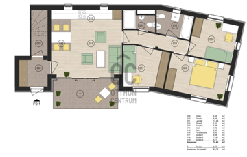 Tetőtér : 2 db lakás ( egyik lakás : 57,2 m2 , a másik lakás: 52,18 m2 )