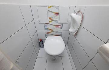 A fürdőszoba, a wc és a konyha jó burkolatú, a szobák parkettásak, a többi helyiség járólapos.