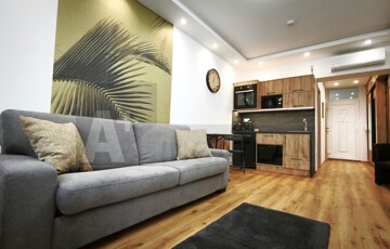 - 33 m²-es apartman: amerikai konyhás nappali + külön fürdő és WC + erkély