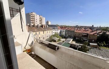A nagyszobához egy erkély is tartozik, ahonnan szép kilátás nyílik a belvárosra. Ideális a reggeli kávézáshoz, vagy egy könnyű nyári vacsora elfogyasztására.