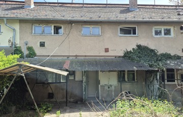 A 6 lakásos sorház előtt kiskertet látsz és a belső út mellett is lehet parkolni.Hatalmas fák, liánok adnak bőséggel árnyékot.